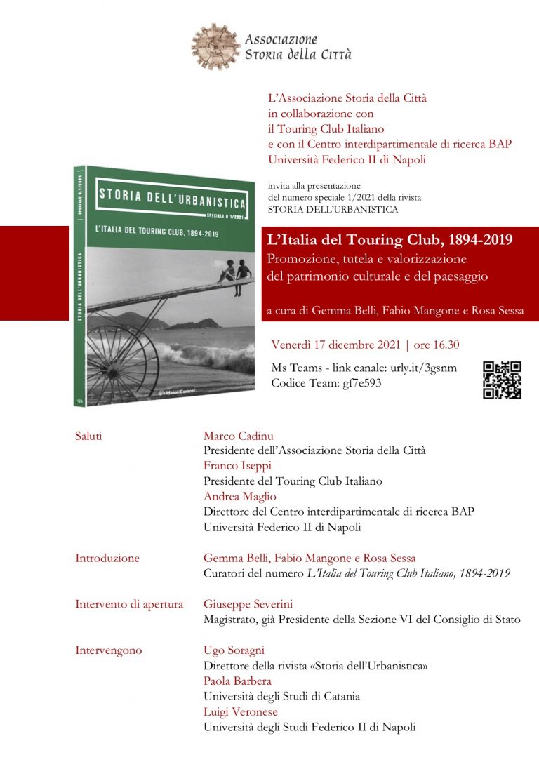 L’Italia del Touring Club, 1894-2019. Promozione, tutela e valorizzazione del patrimonio storico e del paesaggio. Presentazione del volume a cura di Gemma Belli, Fabio Mangone, Rosa Sessa, in collaborazione con TCI, Associazione Storia della Città, Palazzo Gravina (Napoli), 2022