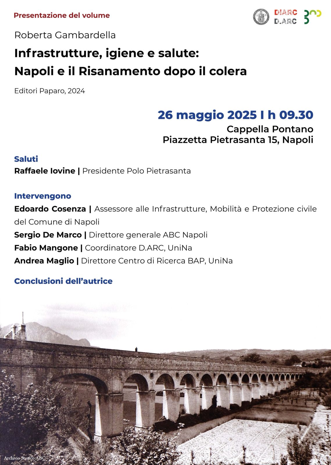 Luigi Vanvitelli: Il Ponte Carlo III fra le Sorgenti del Fizzo e il Ponte della Valle di Durazzano: opere minori dell’acquedotto carolino, Augustissima Compagnia della Disciplina della Croce, Università di Napoli Federico II, BAP, Città Caudina e Comuni di Moiano, Airola, Bucciano, Durazzano, 2017