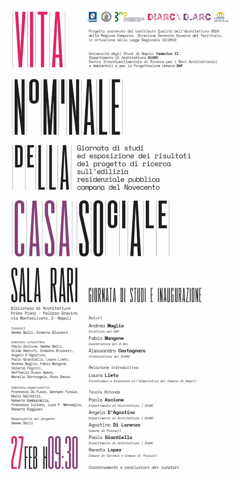 Giornata di studi e inaugurazione dell’esposizione dei risultati del progetto di ricerca sull’edilizia residenziale pubblica campana del Novecento